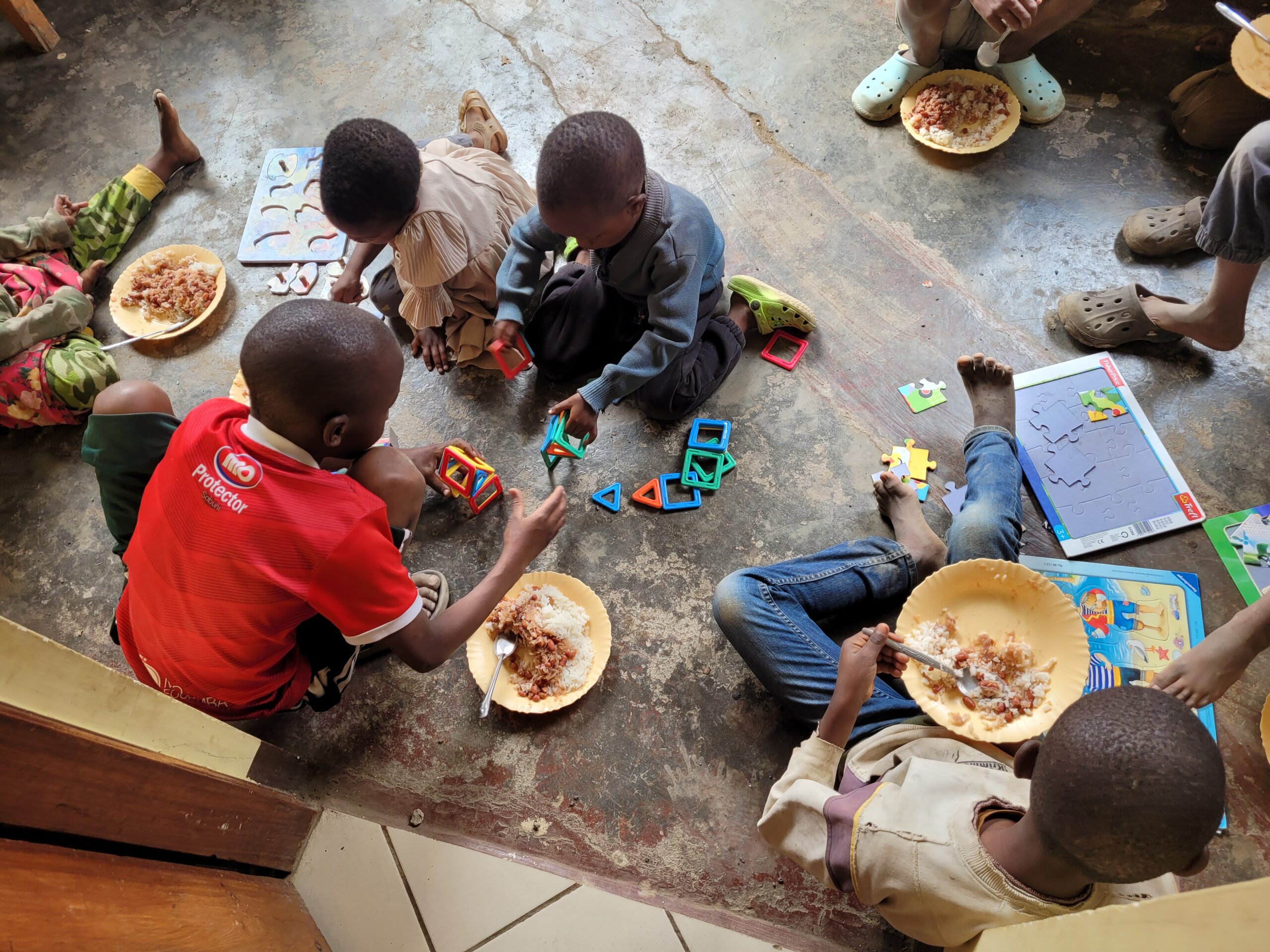 Im Center finden Kinder und Jugendlichen eine verlässliche Mahlzeit, einen geschützten Raum und Zeit zum Spielen. Der mitgebrachte Fußball ist das einzige Spielzeug, das den Kindern zur Verfügung steht, und wird mit großer Freude genutzt.